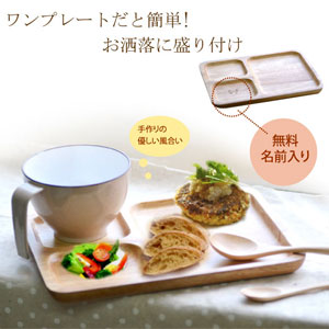 名前入りで自然素材、離乳食、幼児食にも大活躍の木製手作り名前入り木製トレイは、自然のままの素材だからこそ、ひとつとして同じものはなく、まさに世界にひとつ!生まれた赤ちゃんだけの食器で、風合いから感じられるぬくもり、そして使う程に良い艶を感じることができるのも自然素材ならでは。